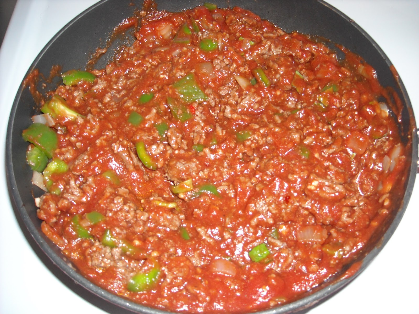 Brown 2 lbs of ground beef & add ½ cup chopped onions. Mix in 1 package hot taco seasoning and 1 package regular taco seasonings. Once cooked, take 8 ounces of crushed Doritos, either nacho or taco flavored & mix together with ground beef. In 9x12 cake pan, spread mixture across the bottom of pan. Spread 8 ounce bag shredded Cheddar or taco cheese across the top of beef mixture. Bake in preheated 350 oven for about 10 minutes, or until cheese is melted or sticks to mixture of beef. Take out of oven immediately. Layer with shredded lettuce & top with chopped tomatoes. Ready to serve. Top with your favorite taco sauce or hot sauce.